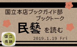 ⇒選書ページはこちら 国立本店ブックガイド部 中西です。 前回に引き続き本を紹介するイベントを開催します。 今回のテーマは民藝。 ~~~~~~~~~~~~~~~~~~~~~~~~~~~~~~~~~~~~~~~~~~~~~ … 続きを読む 1/19 ブックトークイベント 国立夜読 第2回